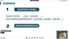 王老师紧接着以建发集团行政专员的岗位说明书为例,向大家介绍如何分析一个具体岗位的工作要求。并以此为出发点,指导同学们有针对性地制作简历、准备自我介绍和预演面试官的提问。她认为,不论是简洁清晰的简历,凸显自身优势的介绍,还是美美的职业照等多项准备工作,都应当把握“思深方益远,谋定而后动”这一核心要求。此外,王老师还介绍了STAR面试、电车难题心理测试、辩论等新颖的面试形式,让同学们对求职面试有了更加多元的认识。